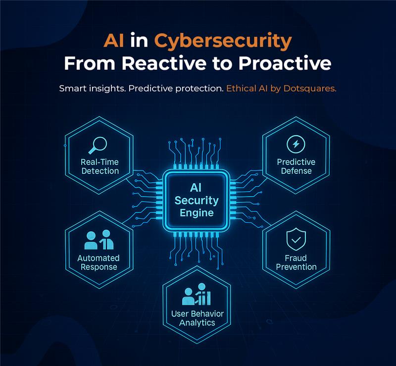 At Dotsquares, we use AI in developing intelligent, adaptive, ethical cybersecurity systems protecting your business with fairness, transparency, and data integrity.